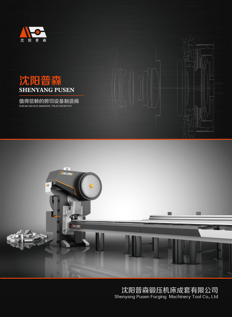 沈阳普森锻压机床成套有限公司成立于一九九二年,座落于沈阳市经济技术开发区,是一个集研发、制造、销售为一体的专业化、现代化的锻压设备生产企业。二十多年来,我们专注棒料剪断机的性能提升与制造。二十多年来,我们始终致力于为客户降低综合下料成本。我们是国内第1家实现冷剪成线的剪断机制造商。我们有健全的管理制度和完善有效的全面质量管理体系。我们有反映迅速、服务周到的售后服务系统。公司主导产品分为六大系列:1)X-Q42系列自动棒料剪切生产线;2)X-Q42M精密系列自动棒料剪切生产线;3)S-Q42系列棒料温(热)剪切生产线;4)Q41Y系列精密液压棒料剪切机;5)Q41系列型钢剪断机;6)Q43系列鳄鱼式剪断机;公司产品适用于冶金、锻造、汽车零部件、五金工具、紧固件、钢板弹簧、轴承、物资回收等行业;可满足45#、40Cr、42CrMo、60Si2Mn、20CrMnTi等中、高强度材料及Q235A、08钢、不锈钢304等低强度材料剪切。十几年来,产品畅销全国各地,并远销印度、巴西、阿根廷、斯洛文尼亚、埃及等其他国家,已被近千家单位选用,深受广大用户欢迎,并得到了广大用户的信赖与支持。普森人的追求:为客户提供一流的剪切设备!值得信赖的剪切设备制造商!