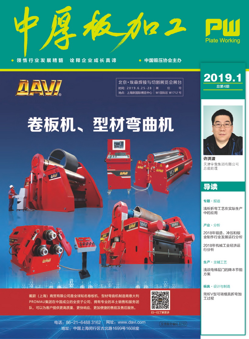 《中厚板加工》2019年第1期《中厚板加工》(原名为厚板与钢构)杂志是中国锻压协会主办的面向厚度大于(或等于)6mm的金属中板、中厚板、厚板、特厚板材加工,厚管加工,钢结构成形行业的综合性高端杂志。