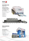 法格塞达致力于为汽车冲压和金属板材加工行业提供最先进的成形和裁剪生产设备,也为白色家电行业量身订制壳体钣金成形生产线。2015年,集团的兄弟成员公司ONAPRES加入法格塞达家族之后,我们的产品线拓展到了非金属复合材料成形领域。我们开发最新型轻量化材料的加工成形技术,包括碳纤维增强复合材料成形的工艺。为推进汽车工业的绿色革命做出自己的贡献。法格塞达在高强钢、超高强钢、铝板校平和剪切技术等传统优势领域持续发展,我们向汽车制造行业交付了两套热冲压成形生产线,均采用了法格塞达的伺服直驱技术机械压力机,其中一台配备了双臂多工位传输自动化装置。法格塞达的高速激光落料系统已经在钢板加工行业投产。在家电钣金领域,我们已推出用于冰箱柜体制造的5米内插弯折系统。这些新技术将引入中国市场服务用户,中国工厂也将利用本土供应链资源优势,参与制造和装配。