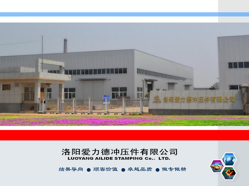 洛阳爱力德冲压件有限公司成立于2006年8月8日,位于洛阳市空港产业聚集区常袋镇鹏兴路9号,占地面积36000㎡,现有生产车间13000㎡。拥有各种制造设备100余台,年生产能力为20万套汽车冲压件。