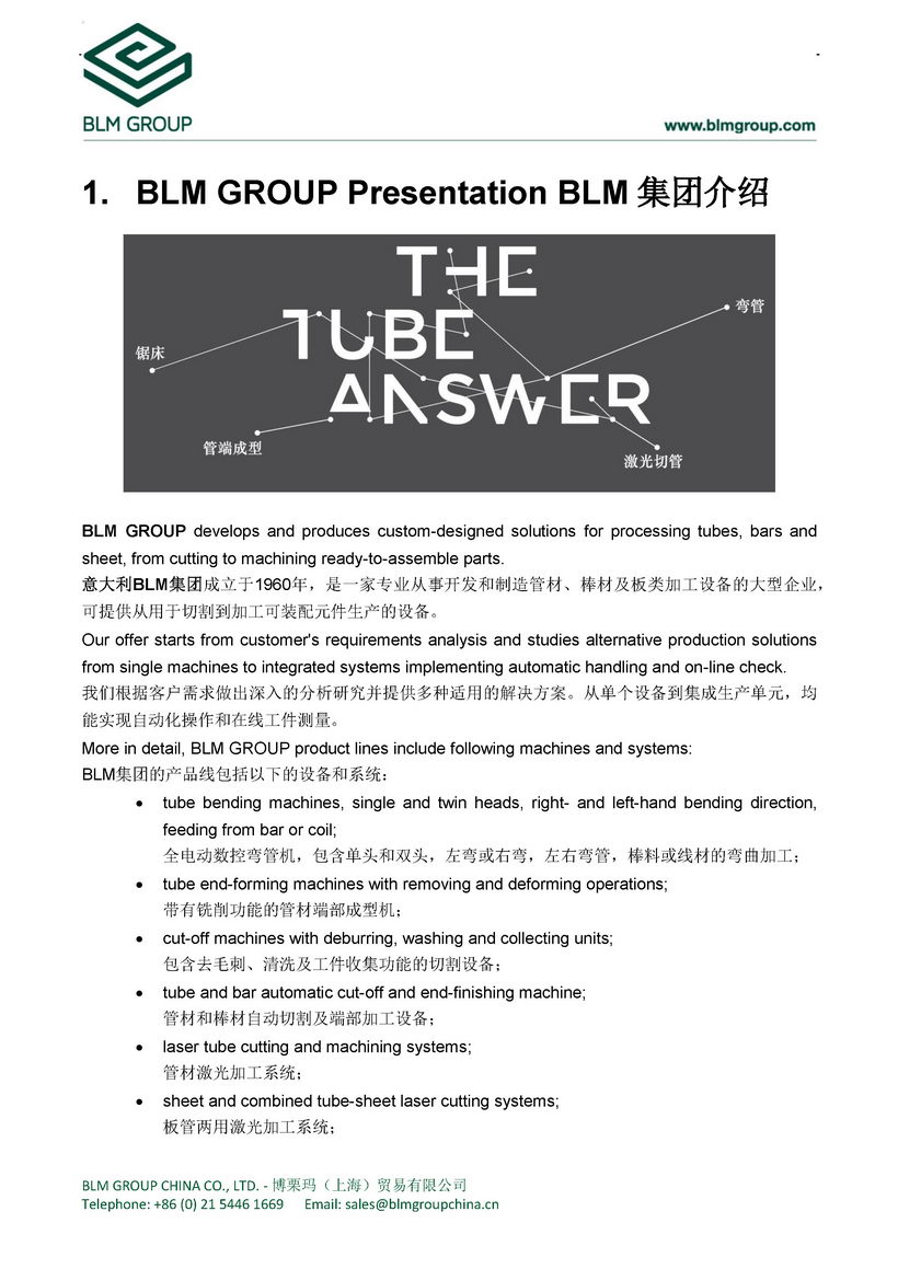 大直径管材激光切割设备以及管材和棒材的锯切和端部加工设备。