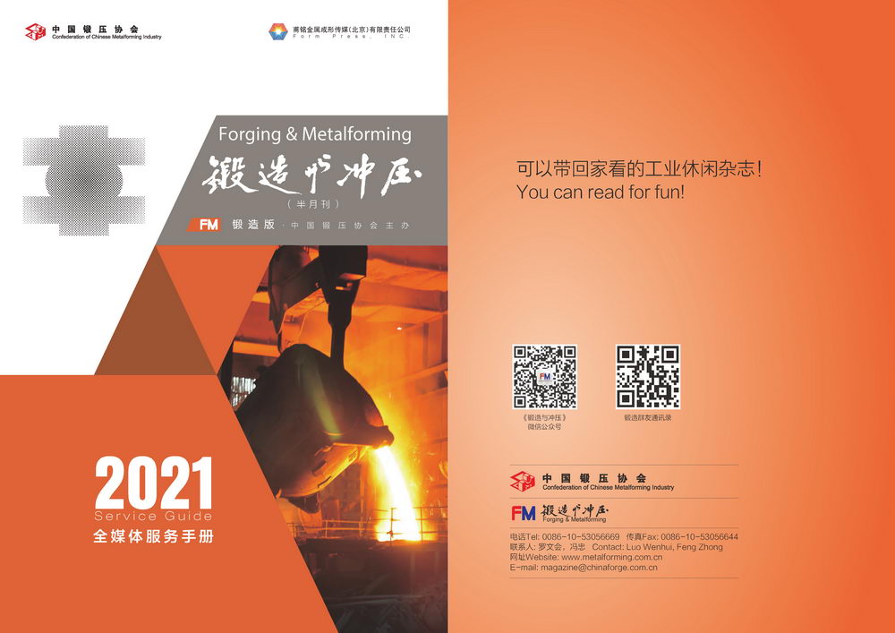 FM《锻造与冲压》由中国锻压协会主办,是一本以市场需求为导向,集信息、技术、产品、市场与管理为一体的综合性高端杂志。月发行量2.5万册,采取B2B发行模式,具有锻压行业针对性最强、覆盖有效率最高的读者群体,是中国锻压行业的领衔杂志媒体,受到国内外广泛的认可。