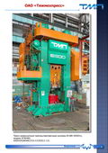 JSC“Tjazhmekhpress”,即众所周知的TMP,是全球知名的各种重工业机械压力机制造商。自1953年第一台压力机问世以来,TMP已向全世界60多个国家提供了约1.3万台各种机器。1955年,TMP首次向中国交货,占据了当地重型机械压力机市场近70%的份额。原因很明显,高性能、结构简单、耐久性和可维护性是TMP设备的不变特点。