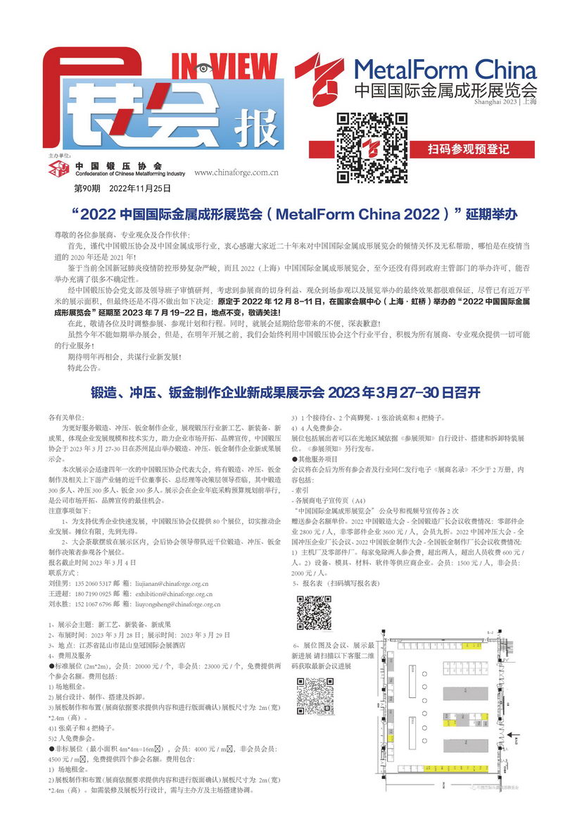 中国国际金属成形展览会,由中国锻压协会始创于1990年的北京锻造展和金属零部件博览会,与创办于2004年的上海冲压展和钣金展,于2007年在北京合并而成。其中,锻造展是世界唯一单独举办的专业展览会,展示规模和水平很高;冲压和钣金制作展,是世界七大同类专业名展之一,是国内唯一的全国性冲压和钣金加工专业展!