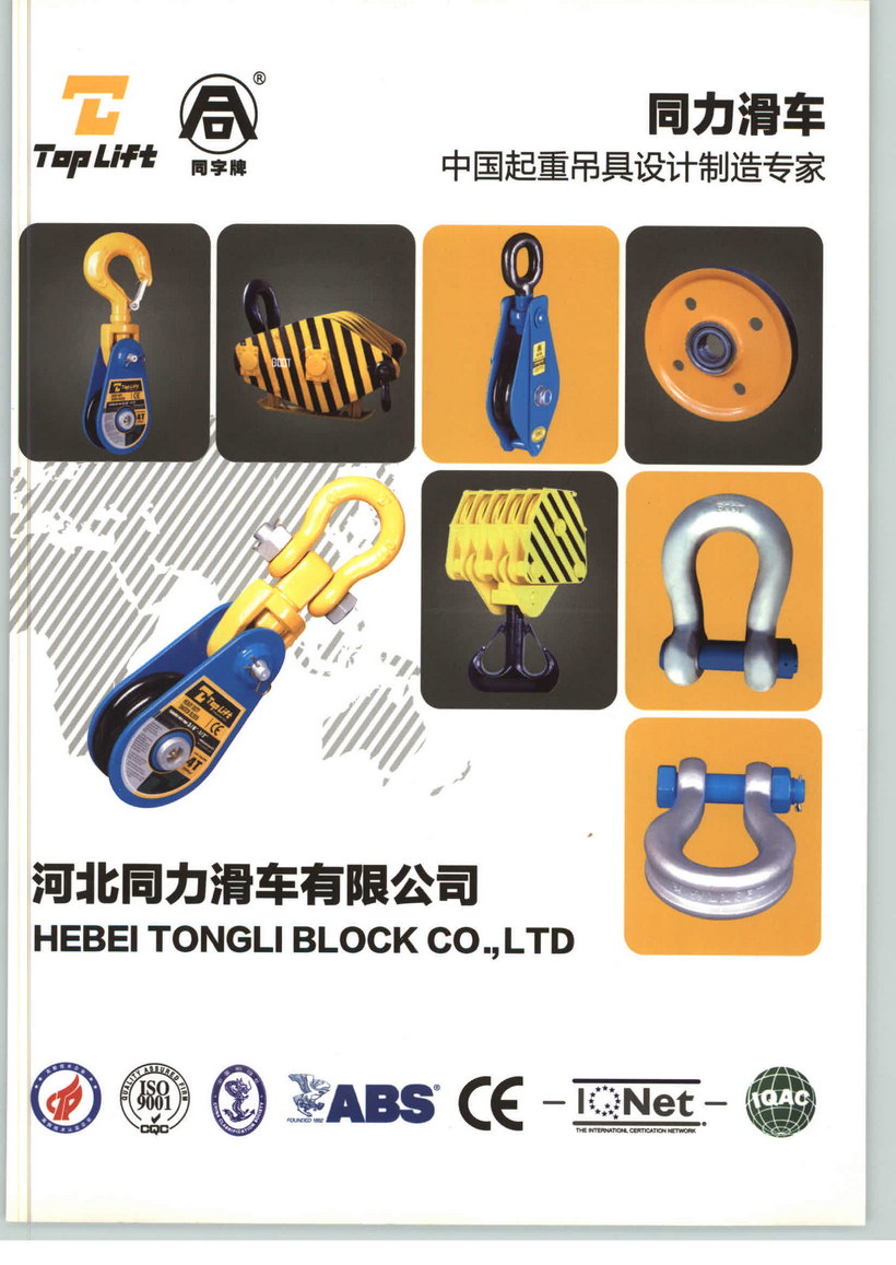 河北同力滑车有限公司是中国起重运输机械行业领航企业,在美国拥有全资设计制造公司,在中国下设全资锻造子公司和河北省省级滑车研究中心,为客户提供“TL TOPLIFT”、“同”字牌各种行业应用起重滑车、宽体卸扣、环眼勾、吊具等起重解决方案,已具备研发中心、锻造、机加工、检验检测中心等完整产业链。"Tong”字牌 HY 系列滚动轴承滑车因具备安全可靠、转动灵活、使用寿命长等独特优点,成为中国HY滑车行业国家标准。热轧钢轮(150mm-1800mm)以单幅板一次轧制而成,凭借精度高、载荷大、耐磨损、强度好等优点,成为铸铁、铸钢轮的更新换代产品2007年一举获得《国家科技进步一等奖》。JDB 镶嵌式滑动轴承滑车(16-1000吨)以承受压力高、抗冲击力强、抗泥沙、耐老化、水润滑不烧轴、耐磨减震等诸多优点在2010年获中国国际专利与名牌博览会《创新奖》。“TOPLIFT”牌强力滑车,由美国同力公司设计,并以其高级合金钢材质、严格的热处理工艺、一流的表面处理工艺,确保各项力学性能都符合欧盟标准,并有欧盟CE认证。“TOPLIFT”宽体卸扣,由公司设计中心经过三年试验研发而成。现已经具备能够锻造25T-1000T宽体卸扣的能力,可进行CCS、ABS、DNV产品试验认证。以上产品均填补了中国国内空白,位居国内行业技术创新巅峰。