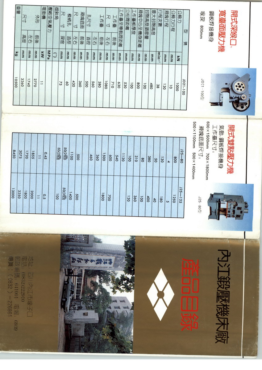 四川内江四海锻压机床有限公司由原内江锻压机床厂改制而成,是农业部、省政府授予的农业产业化“龙头企业”、省“小巨人”计划企业、银行信誉“AAA”级企业、中国出口产品“质量信得过单位”等多种荣誉于一身的四川四海集团之子公司。该公司始建于1958年,是中国锻压机械行业定点生产开式压力机和研制精密冲载液压机的专业厂,是开式压力机和精密冲载液压机国家专业技术标准的起草单位。已获自营产品进出权。企业占地19万平方米,拥有一批精练的技术工人和中、高级技术人员、工程师专门从事各类压力机的开发、设计、生产。其产品多次荣获市、省、部优。主要生产J23、J21系列,JG21、JE21、JF21系列,J21S、JG21S、J25、JA84、Y26系列等八十余种规格的优质产品。