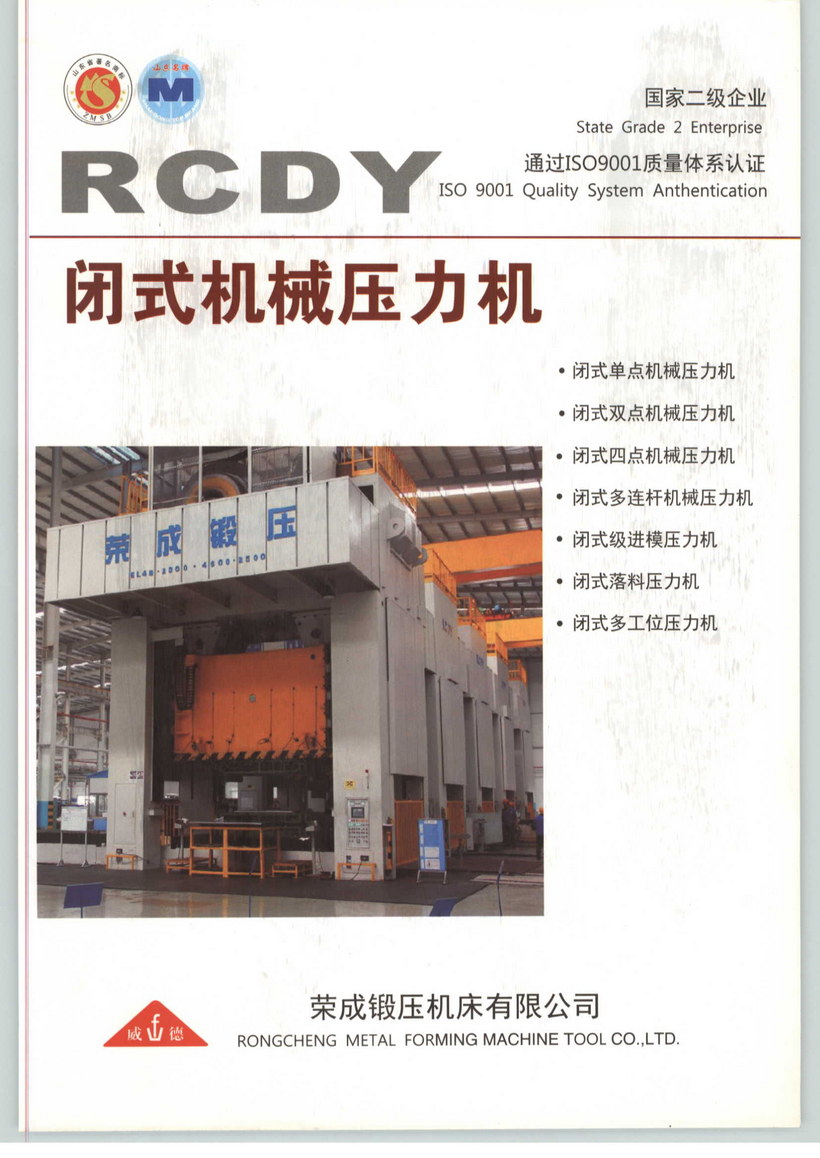 荣成锻压机床有限公司始建于1958年,是生产锻压设备和数控立、卧式车床的专业工厂,国家二级企业。2008年搬到新区后,工厂占地27万平方米,其中厂房等建筑面积12.8万平方米;共有员工1100人,其中工程技术人员与质量专业人员132人:拥有主要设备400余台(套),其中精、大、稀设备60余台(套)。公司于2013年第3次换版通过了质量、职业健康安全和环境三大管理体系认证的复审,连续25年被评为山东省“守合同、重信用”企业。公司先后被省市相关部门授予省级先进企业、山东省认定企业技术中心、山东省高新技术企业、山东省塑性成型加工机械工程技术研究中心、AAA标准化良好行为企业、省计量保证确认合格企业、威海市锻压机械工程技术研究中心、纳税先进企业、五星级职工之家等荣誉称号,“威德”商标是山东省著名商标,“威德”牌压力机是山东省名牌产品。公司现可生产开式全系列,闭式包括多连杆、多工位等6大系列260多个品种的锻压设备,可生产7大系列48个品种的数控立、卧式车床等高新技术产品,多种产品技术水平都达到了当今国内先进或领先水平,产品在国内外市场享有盛誉,公司现已成为国内主要锻压设备制造企业之一。