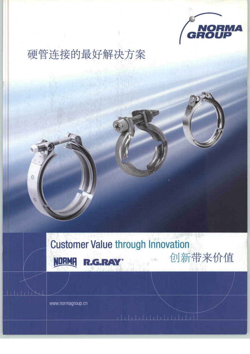 NORMA集团除了生产常用的涡轮蜗杆卡箍外,还针对涡轮增压发动机和柴油发动机设计并生产了多种类型的带v型槽的卡箍。此产品册主要介绍了集团旗下NORMA和R.G.RAY两大品牌的槽型卡箍。NORMA品牌的该类卡箍主要应用在造船、火车机车等大型柴油发动机上。R.G.RAY品牌的槽型卡箍主要被广泛用于柴油发动机和涡轮增压发动机。