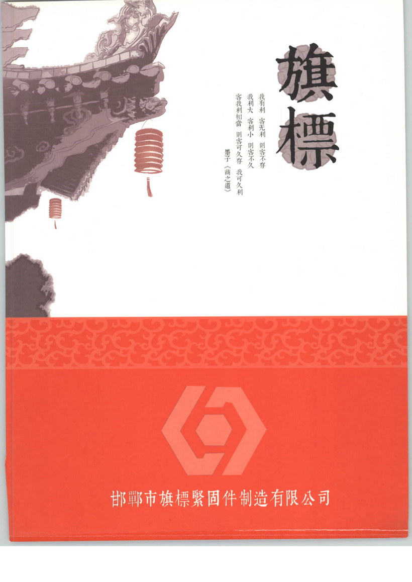 邯郸市旗标紧固件制造有限公司(一般纳税人企业,自营进出口企业)前身为永年县强标标准件厂。为永年县早期专业制造紧固件的厂商之一,公司引进国内先进设备,与优质线材生产钢厂签订合作备忘录,高薪聘请国内优秀技术人才,专注致力于优质性价比的紧固件生产。经多年发展在社会各界与政府帮助下逐步形成了“专业化,自主化,高效化”。在国家大方针“一带一路”引导下,公司开设了外贸部,把高性价的紧固件带给世界各国,为客户创造更大的利润,为国家和企业创造效益是我们今后不惜余力追求的目标。