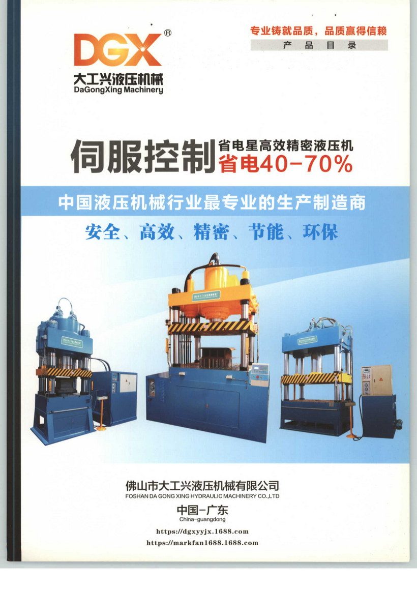 大工兴液压机械有限公司成立于2006年,座落在中国经济最活跃地区之一的珠江三角洲腹地、中国液压技术和产业基地佛山;是一家知名的专业液压设备制造商。公司拥有一支有多年从事液压设备的设计、加工、安装、调试和维修,经验丰富的工程技术人员及技工队伍;严格按照ISO90012000质量体系和6S管理标准进行质量监控及内部管理;可以根据用户的实际需要设计生产各种非标液压设备或液压生产线,并提供最贴心的售后服务。公司专业生产中高档DYS系列数控冷挤压机、DYSR系列数控热挤压机、DY28S系列数控四柱双动高速拉伸机、DYC系列快速液压冲床等二十八个系列的液压机械,被广泛应用于汽车配件如汽车覆盖件、制动片、油箱、底盘、桥壳、保险杠,摩托车配件,硬币,游戏币,徽章,电视机背板,洗衣机不锈钢桶,电饭锅内胆,冰箱背板,不锈钢水槽,茶壶,铝合金,不锈钢餐厨具,压力容器封头,不锈钢杯业,水壶,咖啡壶,不锈钢冰桶,变压器,电机,不锈钢防盗门,木门,多层板,粉末冶金,钟表,电子,礼品,玩具,陶瓷,树脂结合剂砂轮等生产中,产品已销往国内二十多个省市自治区、直辖市,并出口到东南亚、非洲、欧洲和美洲,获得客户的一致好评。