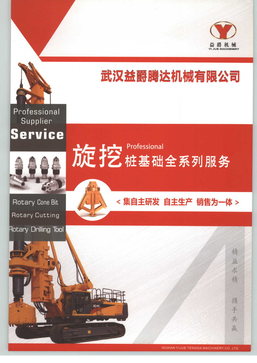 武汉益爵腾达机械有限公司,是一家专业从事桩基机械配件生产销售,整机设备维修保养,机械出租与整机翻新的公司。公司总部位于武汉市东西湖区德思远工业园3栋,全国下设8大仓库,分别位于:武汉,合肥,贵阳,佛山,深圳,昆明,重庆,厦门,就近发送货物。全国四大生产基地分别是,武汉钻头厂,武汉截齿厂,武汉牙轮厂,贵阳钻头厂。另外机械维修保养与翻新厂也位于武汉市东西湖区东光工业新城。公司有销售及生产人员200人,主要生产的配件有钻头,截齿,牙轮,导管等。另整机维修保养,马达,减速机,整车电路,翻新再制造等。公司以诚信为基础,以质量为要求与国内外大型上市企业强强合作:上海远方,华中岩土,上海广联等都是公司长期合作的企业单位。本公司不断改革创新,全体员工齐心协力为徐工基础,宇通重工,福田雷沃,中联重科,山河智能等机械厂家提供施工配套件,也为桩基机械提供了优质的售后服务。