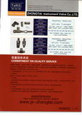 中泰仪表阀门有限公司坐落在中国机械之乡--江苏建湖,是由新加坡投资商在中国境内投资建设的现代化仪表阀门生产型企业,公司技术力量、生产工艺、制造设备、检测手段都已达到国际先进水准。 公司主要产品有各种内螺纹连接、外螺纹连接、卡套式连接、对焊式连接、承插焊连接、法兰式连接的高温高压截止阀、工艺阀﹑二、三、五阀组,仪表针阀、球阀、止回阀等产品,广泛应用于电力、石油、化工、冶金、航空航天、军事、制药等自控管路系统中。公司已通过ISO90001:2000质量体系认证及USACECC认证,被中国机械工业部压力仪表产品质量监督检测中心认定为合格产品,并获得中国国电公司电站配件进网许可。 公司自创办以来,产品畅销国内,远销美国、欧洲、东南亚等国家地区。在各国各大城市均设有办事处及售后服务机构。本公司引进了德国先进的生产工艺和机械设备,配备有沈阳第一机床厂的高精度数控车床,精湛的检测设备十分完善,可靠的质量保证和公司训练有素的员工队伍,为您购买TaiKS系列产品提供完善的优质的服务。我们愿与中外客商,新老客户携手共进,共创事业的辉煌!