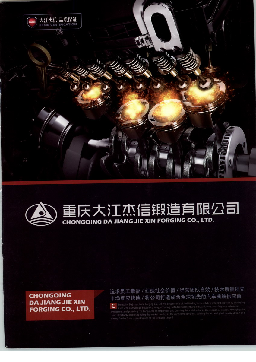 公司技术力量雄厚、工艺先进。共有各类专业技术人员71人,其中:中级高级42人。公司与重庆大学强强联手,成立了“重庆大学·大江杰信锻造研发中心” 在模具设计制造、三维造型分析、制造工艺设计等方面开展广泛合作,在高、精、大锻件的开发和制造上独具优势。公司先后开发出了新型节能环保轿车发动机曲轴、道依茨大曲轴、用于中高档轿车的V6发动机曲轴、用于顶级红旗轿车的V12发动机曲轴等。