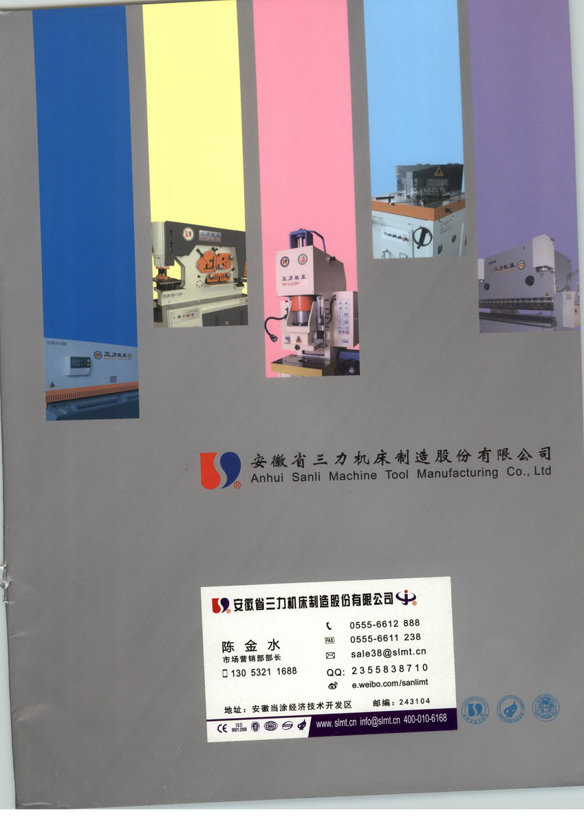 安徽省三力机床制造股份有限公司,属安徽省名牌、免检产品生产企业,安徽省民营科技企业,马鞍山市“专、精、特、新”企业,马鞍山市下岗失业职工再就业基地,介于南京、芜湖之间,坐落在著名的钢城马鞍山市,丰富的钢铁资源为公司的发展提供了得天独厚的优势。公司占地面积108000平方米。生要生产“大盛”牌系列折弯机、剪板机、卷板机、液压多功能快速压力机、联合冲剪机、液压机、液压校正机、薄板拉伸机、龙门剪、鳄鱼剪、 薄板开槽机、折弯机万能模、开卷校平机、型材弯曲机、带锯机、液压打包机、各行业刀具、模具、建筑机械配件,锻件类等产品,专业为航空、轻工、冶金、化工、建筑、汽车、电力、连条、装潢等行业提供所需要的专用机械和成套设备,产品销往全国各地和欧盟、东南亚地区并远销南非等世界各国,