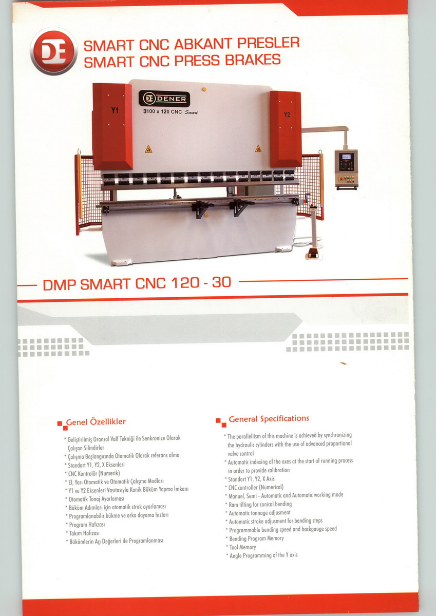 Dener Makina is established in 1974 in Kayseri / Turkey and is a manufacturer of CNC Hydraulic Press Brakes , NC Swing Beam and CNC Rake Angle Shears , Fiber Laser , Plasma Cutters , Corner Notchers and Folding Machines .