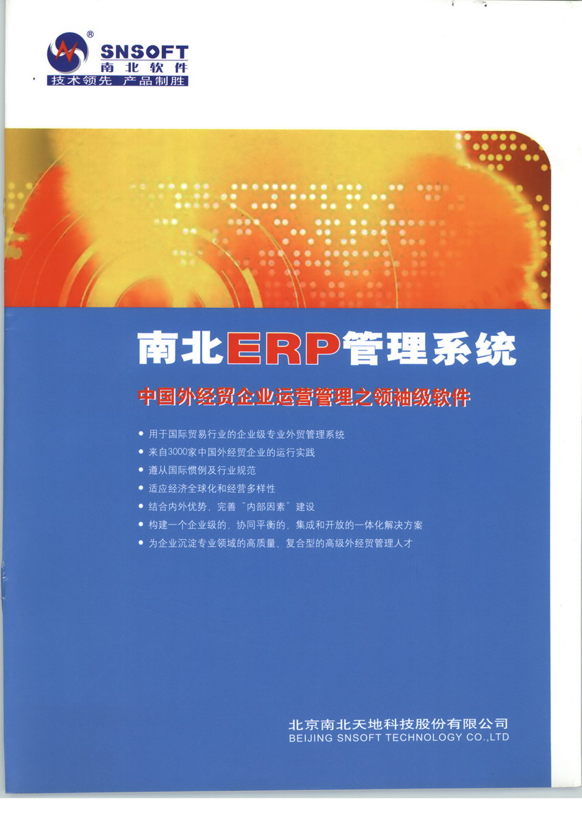 厦门南北公司成立于2008年,隶属北京南北天地科技公司,厦门南北独立运营,是中国***早的财务软件厂商之一,是目前中国成长性的管理软件厂商之一,同时也是中国外贸行业、出版行业管理软件品牌。公司拥有300多人的专业研发与技术团队,20多家全国分支机构,并是通过ISO9001认证的软件企业。同时也是国家科技部“火炬计划”、“国家重点新产品计划”、“高新技术成果转化”、“创新基金”等重大国家支持项目承担企业。