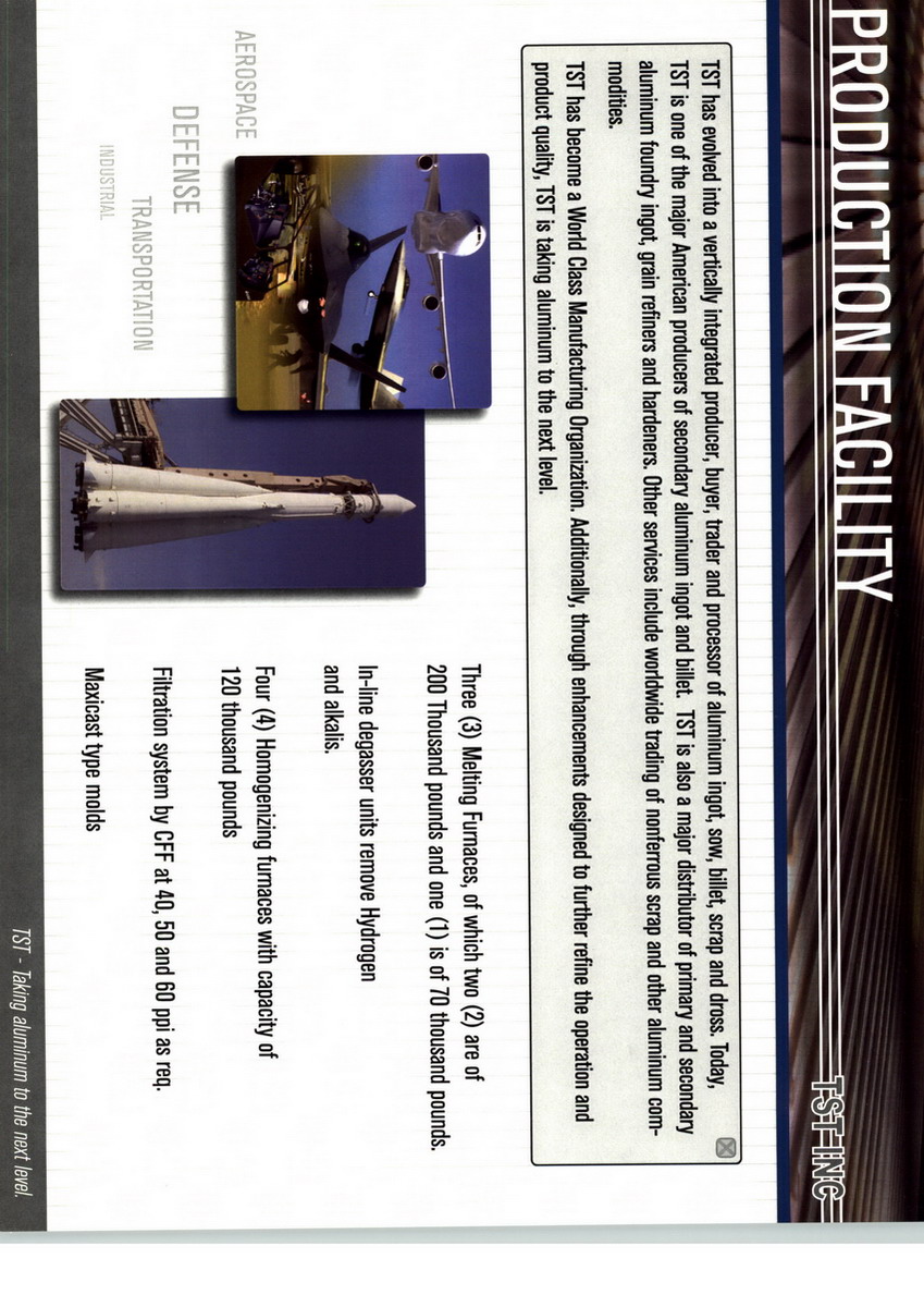 TORRANCE IRON & METAL COMPANY was founded in 1946 by David Stein. In its early years TIMCO's principal business was the processing and trading of ferrous and non-ferrous metals. By the mid-1960's David's sons, Ronald and Robert Stein, joined TIMCO and began to shape the growth and dynamics of the company. During the early 1970's the first aluminum melting furnace was developed and built in TIMCO's Carson, California, facility. This furnace changed the direction of the company from a scrap processor to an aluminum alloy ingot producer which produced high quality alloys to specific customer requirements. As growth continued the brothers further diversified TIMCO. By the mid-1970's, in an effort to expand and increase its growth potential, they entered into an association with STANDARD METALS RECYCLING. Owned and operated by Bill Levine, STANDARD METALS RECYCLING handled mainly aluminum scrap of large industrial manufacturers. Through the efforts of the three principals a new company, TANDEM INDUSTRIES, was formed to produce aluminum alloy billet, and purchased a facility adjacent to TIMCO in Carson where it designed and constructed a billet manufacturing facility. In 1976 the three companies merged to form the present corporation of TST Inc. Under this structure the company continued to grow with the guidance of all three principles. Today TST Inc., with its three divisions, is a leader in the world market of aluminum alloy ingot, billet, and scrap metal trading. From its 1976 inception, the goal of the principals, was to create an environment of high quality and growth. With this philosophy, TST acquired additional land and created a new facility in Fontana, Ca., and a new scrap processing plant in Carson.