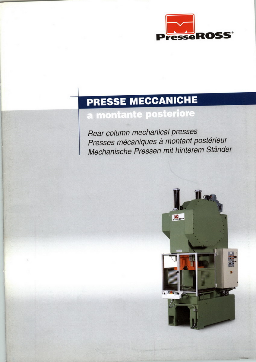 arch-presses with 1 or 2 connecting rods, from 30 to 300 tons double-sided presses with eccentric gears, eccentric shaft, link-drive and varilink of wich Copress holds the patent from 100 to 1500 tons transfer presses with electronic transfer with 2 and 3 axles, up to 1500 tons mechanic and hydraulic press lines for car and elec- tric household appliance industry brass forging press up to 700 tons hydraulic arch - and double - sided presses up to 2000 tons.