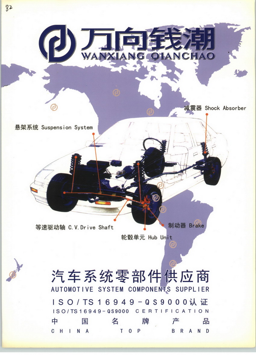 万向以汽车零部件制造和销售为主业,是中国汽车零部件制造代表企业之一。万向在国内已形成6平方公里制造基地,与一汽、二汽、上汽、广汽等建立了稳定的合作关系,主导产品市场占有率65%以上。国外,在美国、英国、德国等10个国家拥有近30家公司,40多家工厂,海外员工超过16000人,是通用、大众、福特、克莱斯勒等国际主流汽车厂配套合作伙伴,主导产品市场占有率12%。