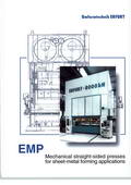 In a hydraulic press which is particularly intended for the compression moulding of fibre-reinforced plastics and in which the pressing force is introduced symmetrically from above, by means of at least one hydraulic pressing cylinder (5) via an associated connection point, into the press slide (9) which is guided laterally and can be braked by means of counter-holding devices, in which arrangement the connection point is formed by a hydrostatic bearing element (8) into which plunges in each case a part of the associated pressing cylinder (5), a relative movement having a small transverse force and moment between the piston (plunger 7) of the pressing cylinder (5) and the press slide (9) is achieved if the hydrostatic bearing element (8) is designed as an annular body (18) and is arranged in a sealing manner on a supporting face of the slide (9), and if the effective diameter of the seal (39) opposite the press ram (9) is smaller than the diameter of the end of the piston rod (19) which plunges into the annular body.