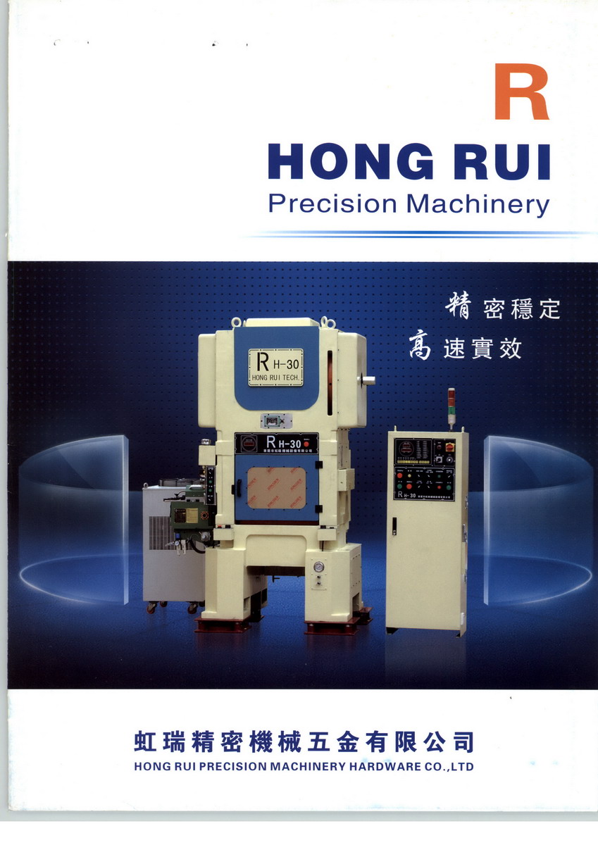 广东虹瑞智能设备股份有限公司一胶集研发、设计、生产及销售为一体的独资企业,于2001年成立于广东省东莞市。东莞市虹瑞机械有限公司拥有车床、铣床、磨床、数控镗床、振动仪、下死点精度检测仪及坐标测量仪等先进机械加工设备和量测仪器。专业研发生产C型R25、R45、R65、R85三圆导柱式高速精密自动衝床及龙门RH25、RH30、RH45、RH65、RH85 、RH100、RH125、RH200型龙门式高速精密自动冲床。产品广泛应用于电机定转子、E铁芯端子、接插件、板对板、手机弹片、LED支架、SMD、连跳等精密电子和制冷散热片等所有需要高速冲床的领域。