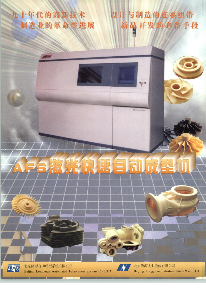 京隆源自动成型系统有限公司(Longyuan AFS Co., Ltd.)(以下简称“隆源成型”), 为北京三帝科技股份有限公司(3D Printing Technology, Inc.)控股子公司。成立于1994年,注册于中关村科技园区。自1994年研制成功第一台激光快速成型机始,便倾力开发选区激光粉末烧结(SLS)快速成型机,同时致力于快速原型、激光智能制造的应用加工服务。是我国最早开发、生产、销售激光选区粉末烧结快速成型机(工业级3D打印)的企业,荣膺北京市科委认定的高新技术企业、中关村高新技术企业和海淀区创新企业。公司于2002年通过了ISO9001国际质量体系认证。2013年,三帝打印科技公司控股隆源成型。作为国内专业的大型3D打印(SLS/SLM/LMD)技术、激光加工技术设备服务供应商,隆源成型通过拥有自主知识产权的3D打印、激光智能制造设备及产品、全面的工艺及雄厚的技术实力为用户提供快速铸造、金属3D打印、激光加工、塑料件加工等个性化的定制服务。隆源成型加工服务中心已为航空航天、汽车摩托车、泵业阀体等行业快速制造了大批量的异形复杂制件。通过技术团队研发和核心技术产业化,隆源成型目前已拥有具备完全自主知识产权的砂模/蜡模/高性能高分子材料打印(SLS),金属激光3D打印(SLM及LMD),涵盖了AFS-360、500、LaserCore5300、5300A、6000、7000等型号的SLS装备,金属铺粉AFS-M120、M90、M300、M260,同轴送粉AFS-D600、D800V等型号的金属激光3D打印成套装备,及激光焊接、激光再制造、激光表面改性、激光核心器件等成套设备及技术工艺。拥有近千家设备及加工服务用户,遍布航空航天、汽车制造、石化、矿山、机械制造、船舶、军工、医疗、文化艺术等领域及研究院所和高校。秉承“市场是龙头、创新是关键、品质是根本、服务是实质”的文化理念,隆源成型立志成为工业级3D打印领域及激光智能制造的世界级设备制造商和技术服务商。