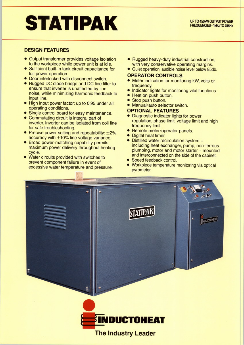 Inductoheat is leading the world in induction heating technologies. Our innovation in induction power supply design more than 40 years ago is the foundation for the development of our breakthrough technology today.From advanced independent frequency and power inverters to digital process monitoring and SPC software solutions–from advanced billet and bar induction heating systems to predictive numerical calculation applications–from 24 hour field service support to technical seminars covering the most state-of-the-art induction technologies, Inductoheat is redefining the process of managing and owning your own induction heating equipment.We strive to improve efficiency, productivity, and quality for our customers through constant improvement and continuous innovation. With the evolution of our proven products, Inductoheat will continue to bring the best and most advanced technology to our customers worldwide.Inductoheat is part of 40 companies making up the Inductotherm Group. The Inductotherm Group offers advanced technology for the engineering, manufacturing and service of thermal processing equipment used in the melting, heating, heat treating, forging, galvanizing, coating, cutting and welding of metals. Bringing together 40 companies with 38 manufacturing facilities located in 19 countries, Inductotherm Group delivers innovative products throughout the world. Customers rely on Inductotherm, Inductoheat, Inductoscan, Inductoforge, iRoss, Thermatool, Radyne, Consarc and other trusted brands in the Inductotherm Group to provide outstanding equipment and services.Inductoheat offers full service capabilities similar to a “one-stop” shop for our customers. Services include a comprehensive process development and metallurgical laboratory, complete engineering design and equipment manufacturing department, a large induction coil department, a robust customer power supply training program, aftermarket support department and a 24 hour “on-call” field service group . Whether you’re performing heat treating, forging or any other thermal process, Inductoheat can put the heat where you need it!