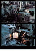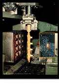 Two opposing hydraulic rams simultaneously drive bearings onto bearing seats at opposite ends of an axle assembly on which wheels inside the bearing seats are already in place. Wheel support dollies initially position and support the wheel and axle assembly between the opposing rams. The rams are adjusted vertically to opposed positions concentric with the axle. As the rams act upon the bearings, the axle and its supporting dollies can move axially off its center position if greater resistance is encountered in mounting one bearing than in mounting the other. Sensing means mounted on the wheel support dollies monitor the movement of the axle and stop the flow of driving fluid to the ram which has pushed the axle off center until the opposite ram recenters the axle.