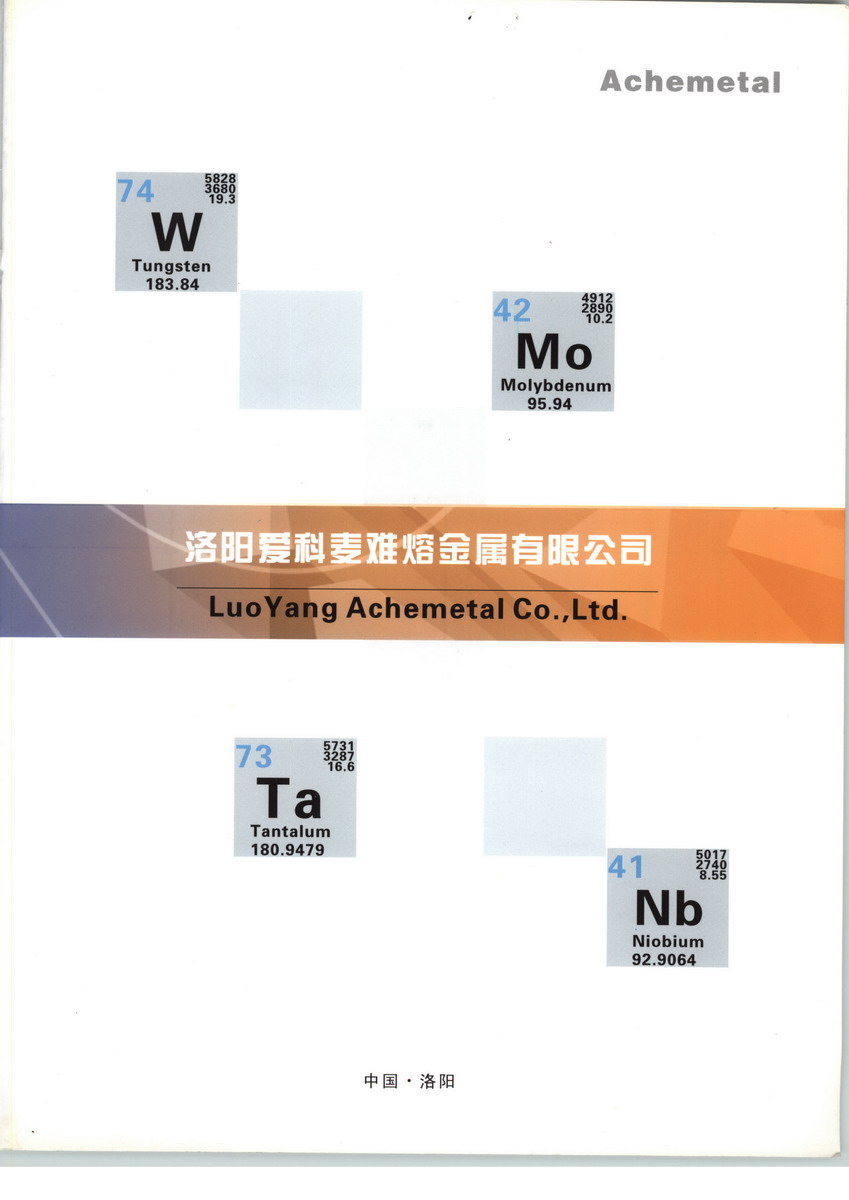 洛阳爱科麦难熔金属有限公司 位于河南省洛阳市洛新工业园区,厂区占地15亩。现有职工86人。专业生产加工钨、钼及其它难熔金属材料和制品。公司年产钨钼材料及加工产品100吨。公司响应国家产业政策,凭借专业的技术工人、精良的生产设备,选用优质钨钼原料,通过烧结、锻造、轧制、机加工等工艺过程,为客户提供优良品质的钨钼产品。产品百分之六十出口美国、德国、日本等十几个国家和地区。另外,部分产品被国内著名航天、航空、有色金属研究院所选用.