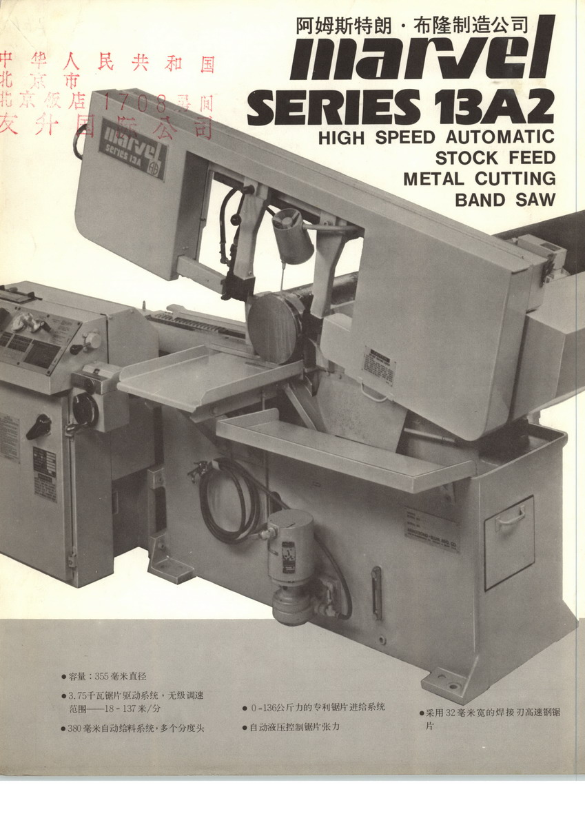 Marvel Manufacturing Company, Inc. offers a complete line of metal cutting saws and ironworkers under our MARVEL and SPARTAN trademarks. Marvel introduced the first vertical tilt-frame band saw in 1917 and remains the leader in the vertical tilt frame market. Our Marvel line of vertical saws ranges from the single cut universal Series 8 to our fully automatic programmable Touch Tech models with miter cutting up to 60 degrees. Our Spartan band saw line features both hinge and dual column band saw designs in capacities from 12 to 60 inches as well as a complete line of plate saws and contour saws. The Spartan brand name also includes high production thin kerf carbide circular saws and our Spartan Ironworkers which are available in capacities from 50 to 180 tons.