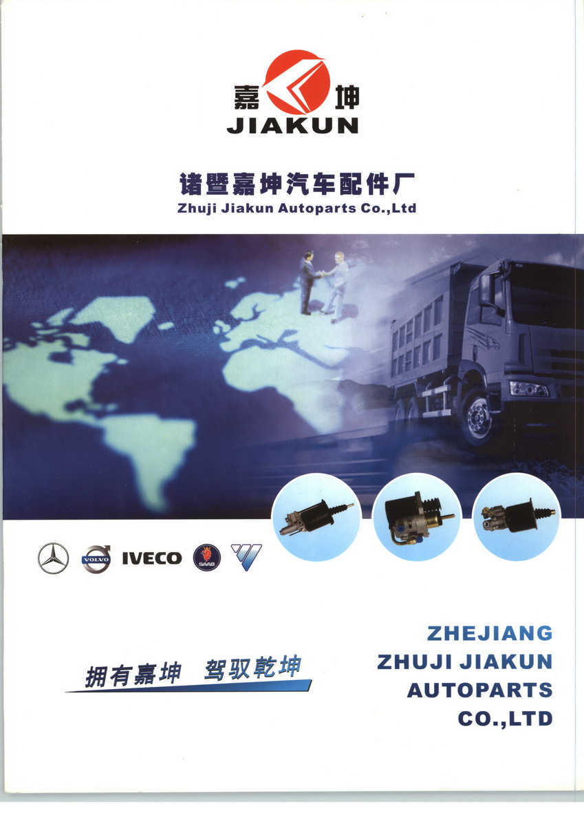 坤汽车配件厂坐落于著名的西施故里、中国华东汽配水暖城――诸暨市店口镇,地理位置优越,紧靠浙赣铁路,杭金衢高速公路和03省道复线,距杭州萧山国际机场40公里,交通便捷。诸暨市嘉坤汽车配件厂引进先进的生产加工和检测设备,技术力量雄厚,运用CAD/PROE系统,自主创新、自主研发各种汽车零部件。主要生产各种欧洲商用车型用离合器助力器、放水阀、手控阀、弹簧制动缸、气制动阀等产品,适用BENZ、IVECO、RENAULT、SCANIA、MAN、DAF、DENNIS、ERF、FODEN、VOLVO及日韩等车型,产品远销中东、南美、东南亚等地区,以优质的产品占领市场,以优良的服务赢得用户的信赖。热忱欢迎国内外客户来诸暨市嘉坤汽车配件厂考察指导及洽谈。