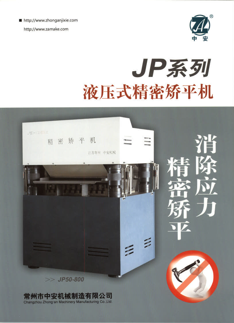 常州市中安机械制造有限公司,紧跟德国、瑞士精密矫平/矫直设备发展潮流,结合国内广大中小型金属零部件制造企业生产需求,采用创新的设计思路,先进的制造工艺,研发生产了JP、SJP、SW及SL系列液压式精密矫平机,校平机,整平机,矫直机,填补了国内板、片状零件精密矫平通用设备的空白。现已被广大汽摩配件、精密链条、纺机专件、电梯部件、机厢机柜、锯片基体等精密机械制造工厂所采用。