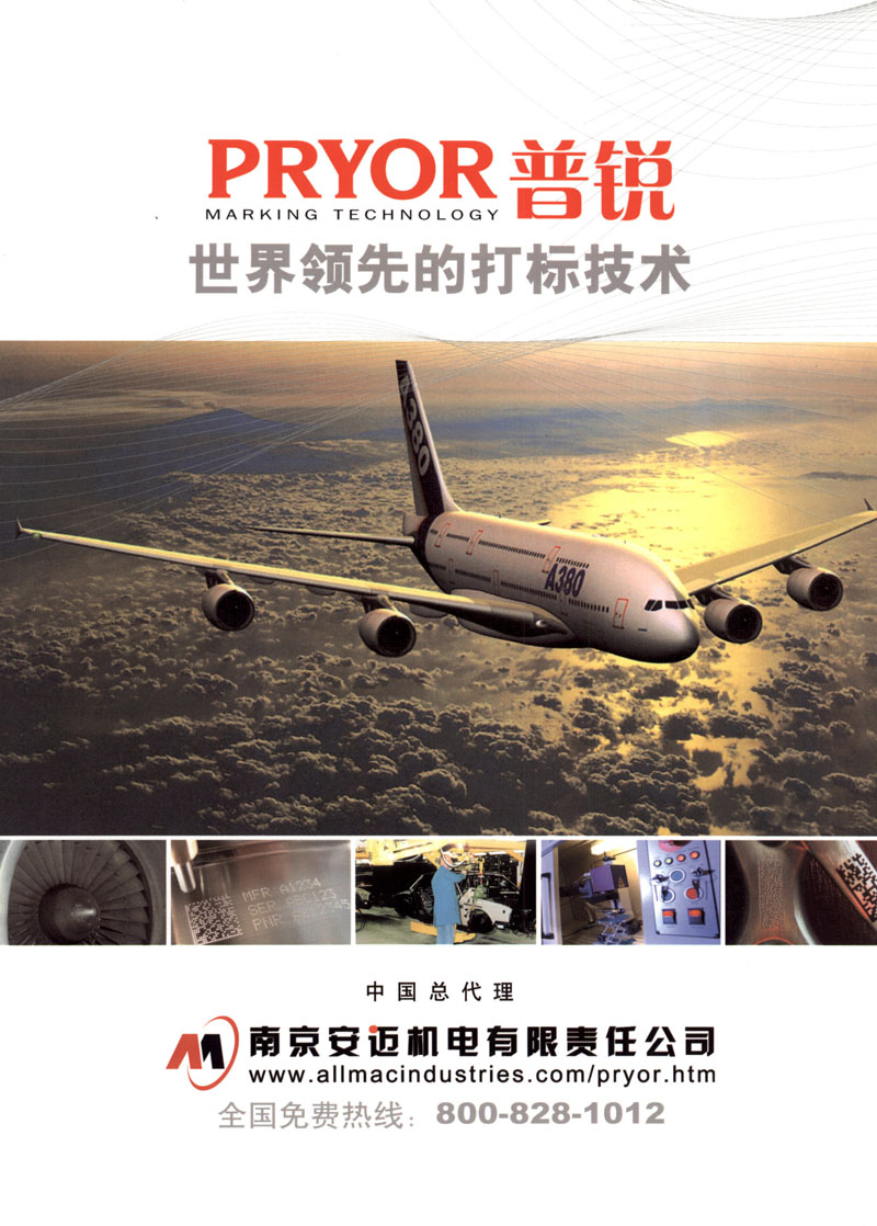 南京安迈机电有限责任公司是英国EDWARD PRYOR & SON LTD打标产品中国总代理,负责其产品在中国的销售及售后服务。经过多年的努力,客户遍及航空、汽车、电子、制造等行业。为客户提供完善的方案和最优的服务是我们不懈的追求。