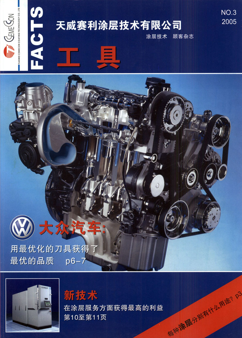 来自德国CemeCon公司的世界上最先进的全套涂层生产设备,采废冉?男VD磁控溅射技术与工艺,涂层表面极其平滑,从根本上避免了液滴现象.天威赛利公司的涂层产品具有以下突出特点: