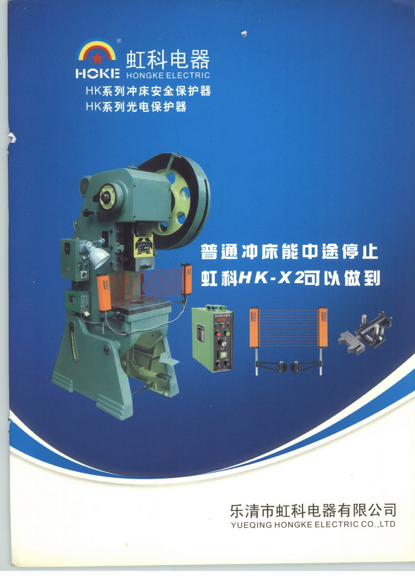 虹科主要从事高新技术产品 ――HK系列冲床安全保护器产品的研发、生产及销售。现有4大品种(HK-X1、HK-D1、HK-D2、HK-MF),36个规格, 广泛应用于不同型号、不同规格的压力机(冲床)、剪板机、拆弯机、液压机、注塑机、铝压铸机、烫金机等机床,当机床操作者出现误操作或即将出现安全生产事故时,冲床保护器能紧急制动,防止安全事故的发生,保障人身安全,有着良好的使用价值和社会价值。