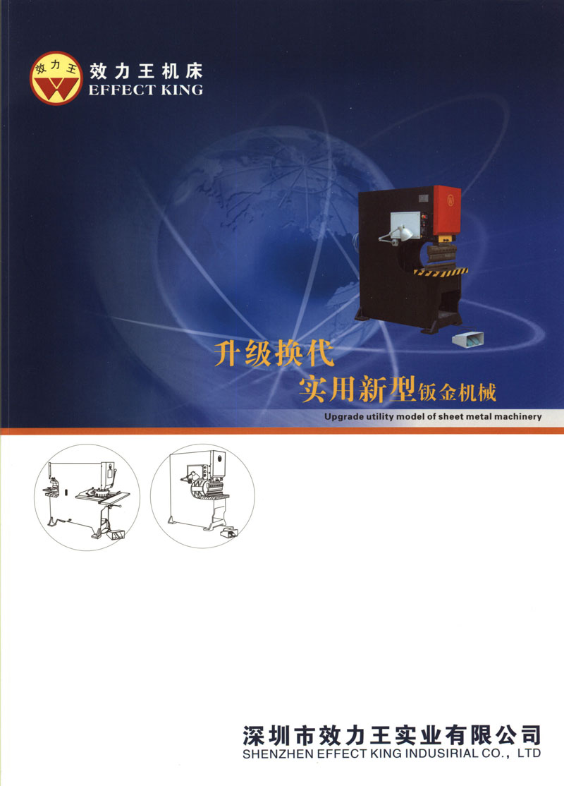 深圳市效力王实业有限公司拥有专业的冲床、油压冲床、油压深喉冲床、油压转塔冲床、油压剪角转塔冲床、油压浅深喉冲床、冲床剪角机、剪角深喉冲床、折边机、折弯机冲床大型制造基地东莞效力王锻压机床厂。是宇田机械(香港)有限公司与深圳市效力王实业有限公司合作,在国内创办的生产基地。根据多年从事五金加工的经验、专业从事实用新型的冲、剪、折板金机械系列产品的研发与生产。