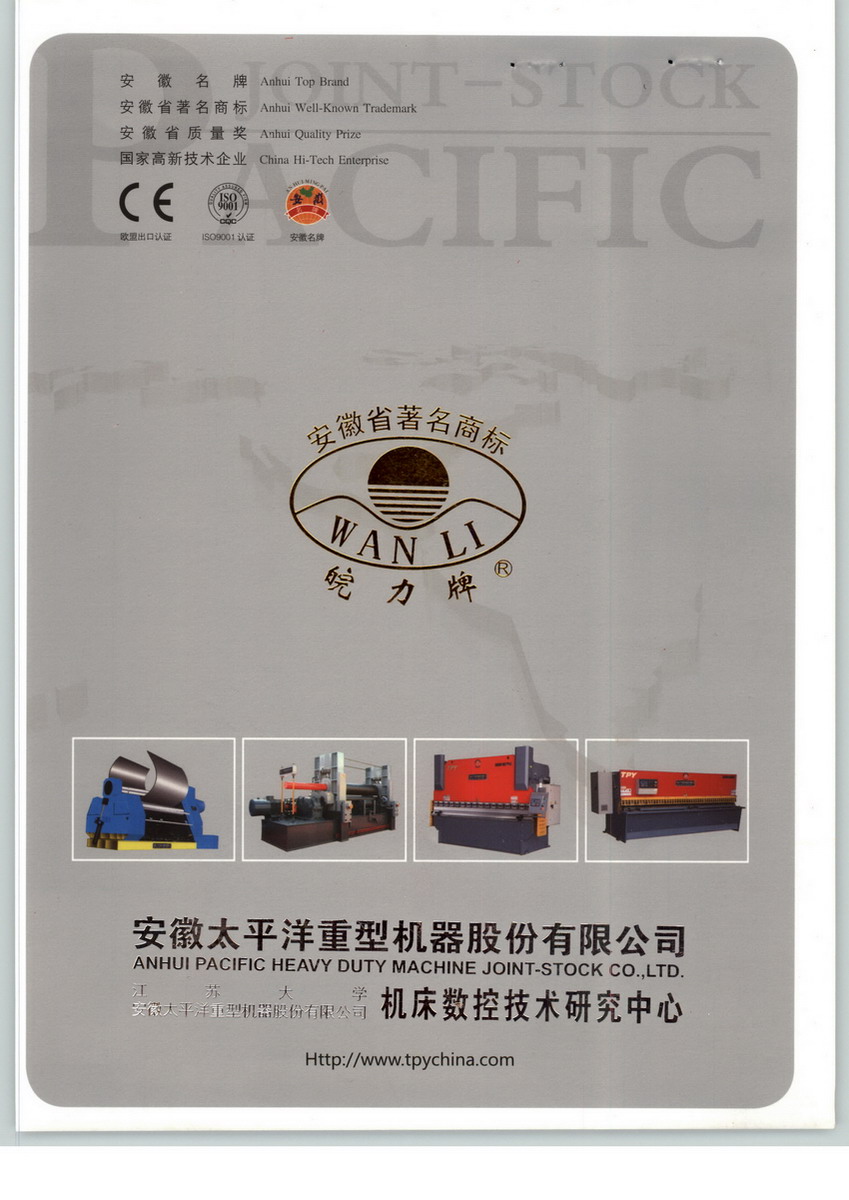 安徽太平洋重型机器股份有限公司系具有产品开发、科研设计、生产制造、技术服务等多功能重型机床制造企业,国家重点高科技产业,全国机床业骨干企业之一。主要产品有:三、四辊卷板机,开卷、校平、剪切生产线、锻造操作机、锻造装出料机、折弯机、剪板机、冲床及刃模具制造等等, 产品畅销全国各地及部分海外地区,得到用户一致好评。本公司位于古都南京与芜湖之间钢城马鞍山市, 毗邻南京碌口国际机场,314省道经过,交通十分便利,地理位置优越。