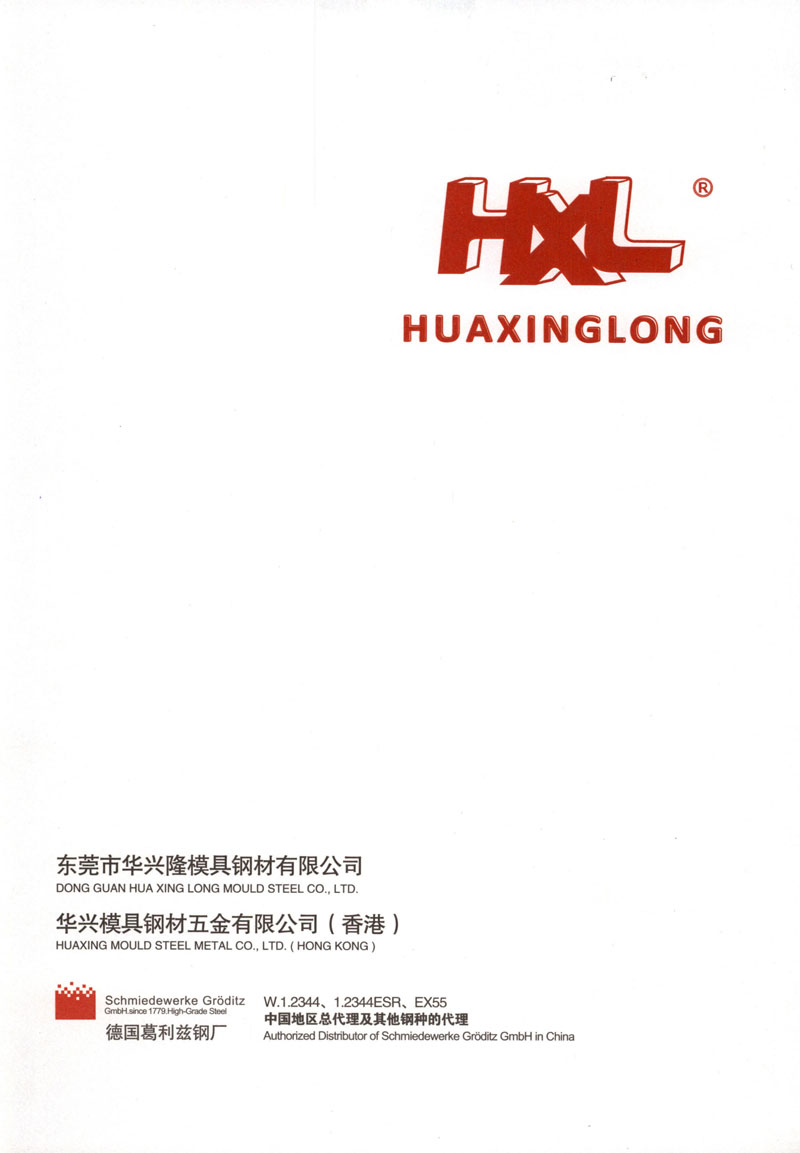 东莞市华兴隆模具钢材有限公司(原深圳市华兴隆模具钢有限公司)成立于1995年,是德国葛利兹钢厂EX55ESR中国区 的总代理,同时还代理德国葛利兹钢厂的热作模具钢、塑胶模具钢和冷作模具钢。目前公司是多家业内协会理事及会 长单位:香港铸造总会、广东省铸造行业协会、香港创新科技及制造业联合总会、深圳机械协会、香港模具协会、香港中小企业经贸促进协会、东莞市光电通讯行业协会等。