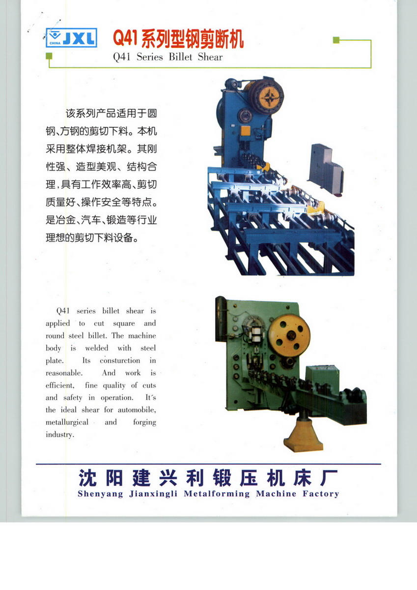 沈阳建兴利锻压机床厂主要经营棒料剪160~1600T,大型剪板机。