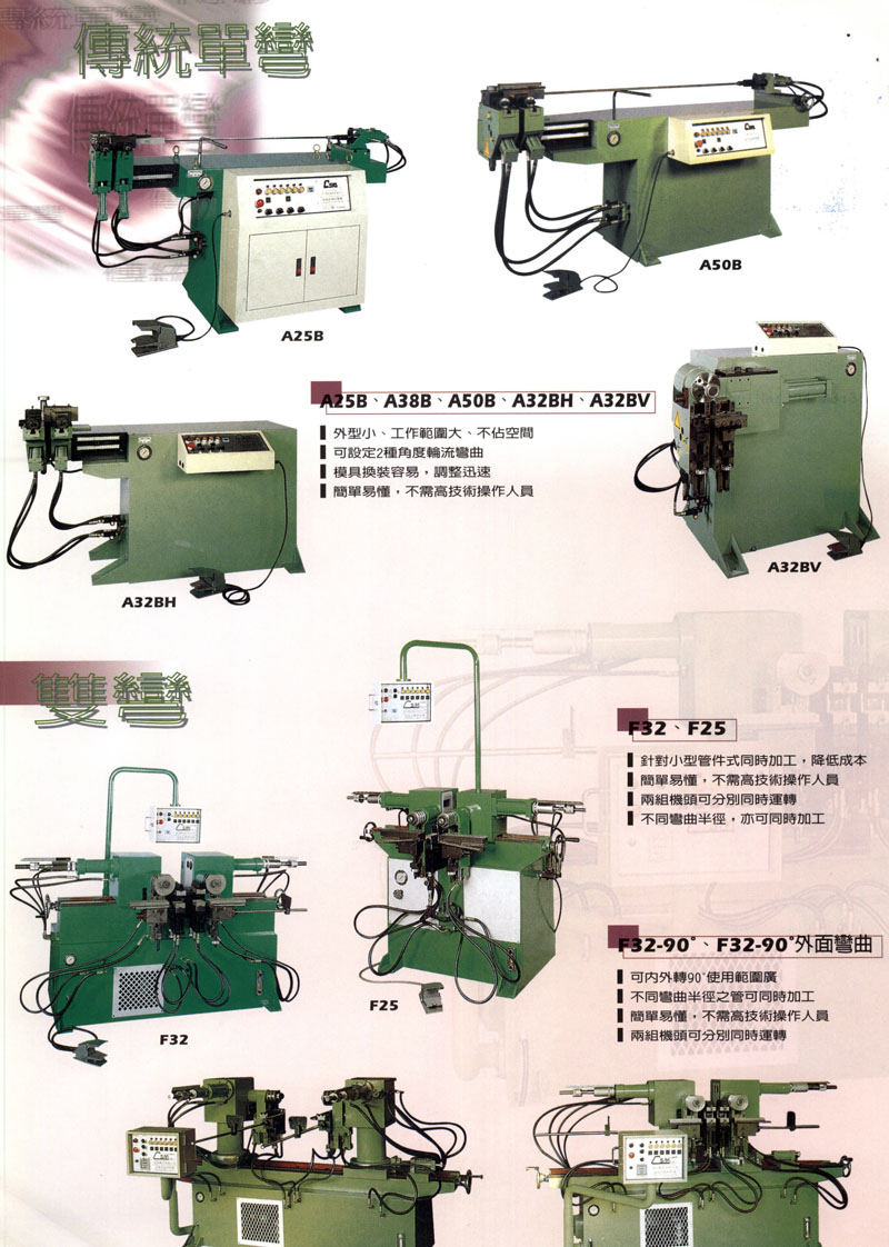 自1984年以来,专业的经营,结合三十年的专业经验及不断追求进步的经营理念,已建立我们公司完整及规格化的产品生产线,以及在全国范围的售前、售后规范化营销服务网络。现今我们拥有18型至219型不同尺寸规格的管类加工设备,机型齐全,特别是在CNC型三维数控弯管机方面有着很强的竞争力,系列产品领先于国内其它生产企业,在国内市场上享有较高的声誉和市场份额。