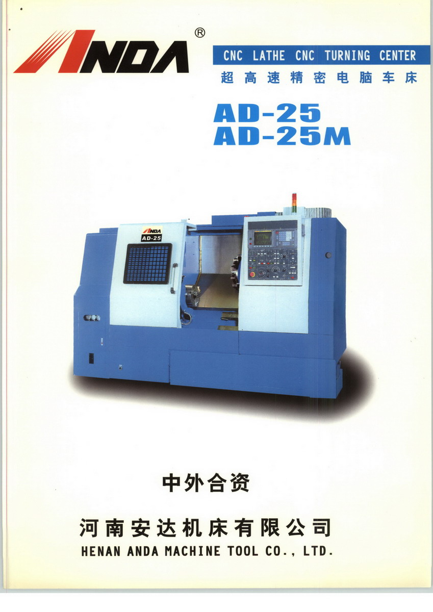 河南安达机床有限公司系中外合资企业,成立于一九九四年,注册资本450万美元,引进日本森精机株式会社的生产与制造技术及其全套检验方法,生产具有国内先进水平的全功能数控车床。 生产销售全功能高速精密数控车床、车削中心和双主轴双刀架数控车床,产品批量出口美国和欧共体市场。