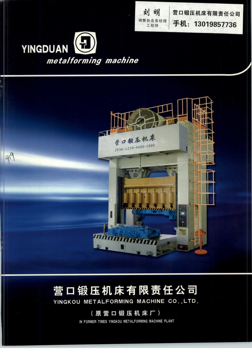 我公司生产各种机械压力机25个系列160种规格,取得了生产许可证和出口许可证,产品畅销国内外。拥有先进的购、销、存及财务管理软件,通过了ISO9001:2008质量体系认证。近年来先后从德国、日本引进技术,加快了产品的更新换代,产品性能更加完善,产品质量不断提高。根据市场的需求,组织了一批技术骨干,汲取国内外先进技术,自主研发了YDE53系列数控电螺旋压力机;广泛用于锻造、耐火和餐具等行业,特别是汽车轻量化零部件的生产制造方面。公司技术力量雄厚,现为辽宁省省级企业技术中心、国家高新技术企业,有110余名高中级专业技术人员,掌握3-D参数化系统设计技术,广泛应用CAD进行机械电气设计、动力分析和有限元分析, 优化了设计基础工作,通过局域网技术将加工图纸与车间进行实时共享,并通过生产指挥(调度)中心平台,实现远程控制及信息化生产管理,实现三维参数化设计及无纸化办公,使得生产加工效率大大提高。大型产品的单机自动化及多台联机冲压生产自动化,技术具有国内先进水平。公司具有先进的设计手段和完善的检测设备,计量国家二级。多种产品获国家专利并被评为国家、部、省、市优质产品,公司获得全国五一劳动奖章,省文明企业,十余名员工分别获得国家、省、市劳动模范和其它荣誉称号。