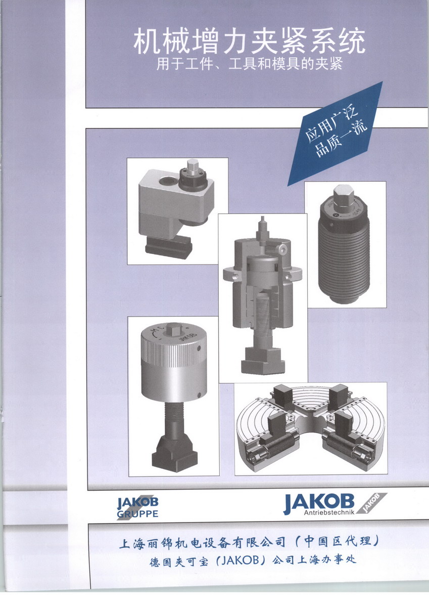 德国夹可宝(JAKOB)是全球知名机械增力夹具厂家,多年来专注于机械增力夹具、工装夹具的设计生产,业绩遍及全球,丽锦机电是夹可宝中国区独家授权代理,公司还经销夹可宝集团旗下其它机床部件,包括联轴器、拉刀机构、刀库等。