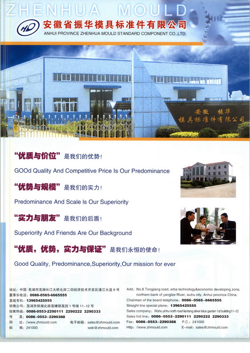 我公司在十余年发展基础条件下,经公司决策企业纳入发展规化,筹资1400万元筹建规模型、现代化模具标准件有限公司。于2000年选址芜湖市二坝经济技术开发区,于2001年10月新厂建设完工,动迁顺产。