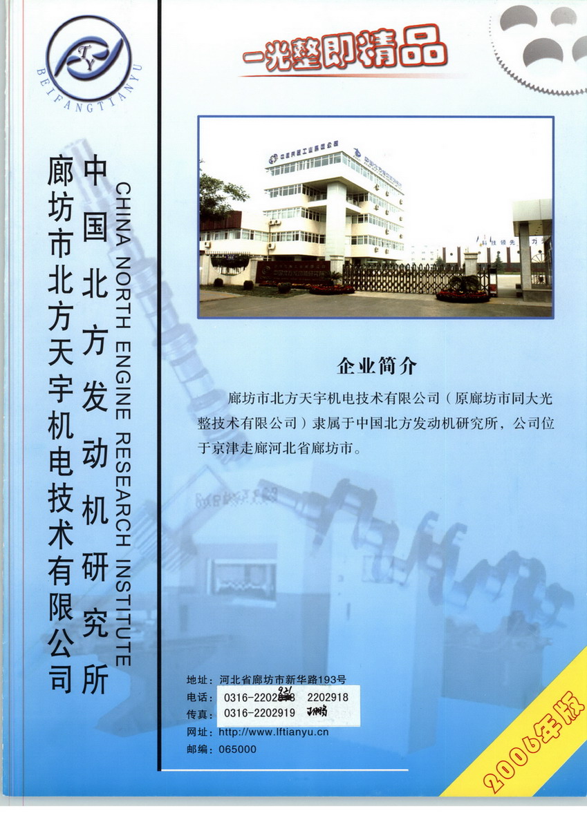 廊坊市北方天宇机电技术有限公司,隶属于中国兵器工业集团北方通用动力集团有限公司,是河北省省级高新技术企业,中国机械工程学会光整技术委员会常务理事单位。