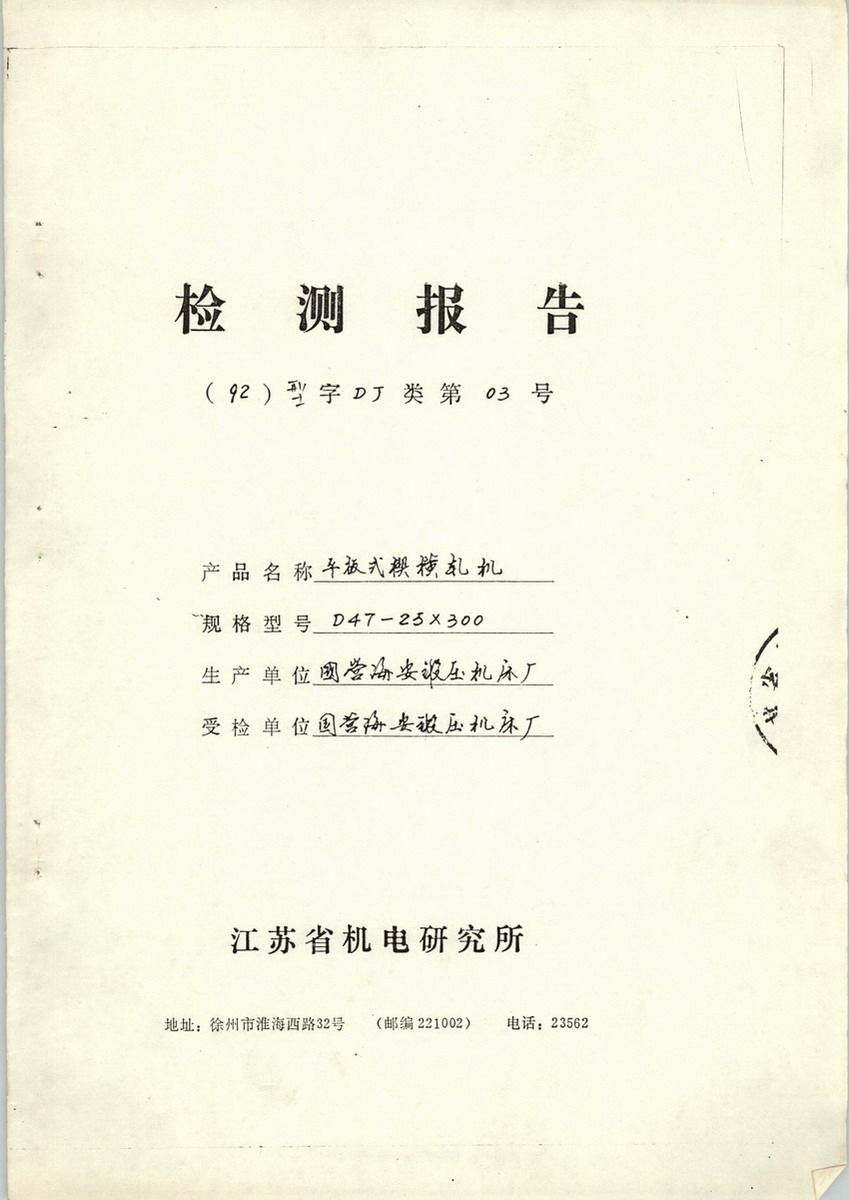 公司与国内著名的锻压加工研究机构、高等院校建立了长期广泛的合作关系,如济南铸造锻压机械研究所、太原重机学院、上海交大等。在金属成形设备及工艺方面积累了丰富的知识和经验,并取得了丰硕的成果:1968年生产出第一台750kg空气锤;1972年生产出我国第一台全液压传动有轨锻造操作机;1974年与山西太原重机学院联合研制出我国第一台63kj机身微动液压对击锤;1986年研制出我国第一台液压传动平板式楔横轧机;1988年与济南铸造锻压机械研究所联合研制了世界上首台机身静止状态下可实现消振并以进油打击方式工作的消振液压模锻锤;2002年研制出具有国际同类产品先进水平的程控全液压模锻锤。