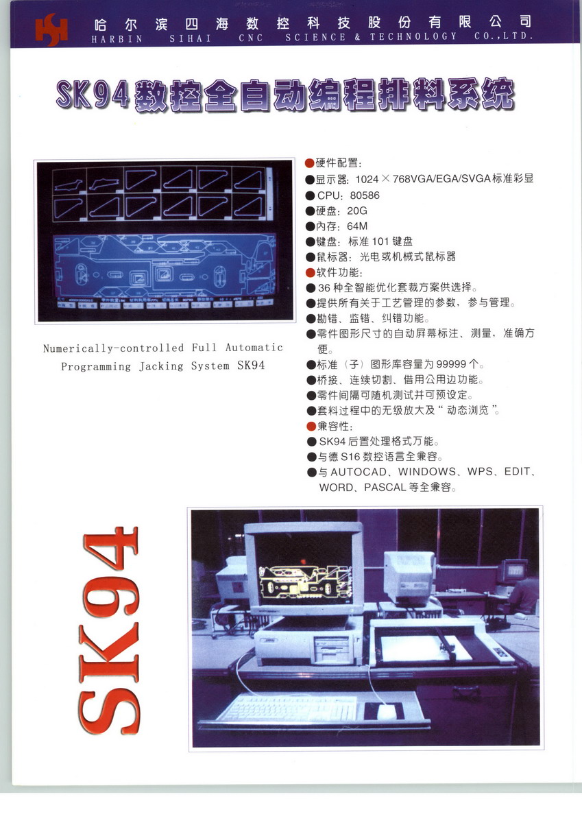 哈尔滨四海数控科技股份有限公司成立于1987年4月,是哈尔滨市第一家以光、机、电一体化数控技术的研究、开发与应用作为发展方向的民营高科技企业。哈尔滨四海数控科技股份有限公司是黑龙江省科技龙头企业之一,也是全国数控切焊机械行业规模最大、品种最全、技术最先进、唯一有产品出口的龙头企业。公司连续七年被评为哈尔滨高新技术产业开发区先进高新技术企业,同时也被评为黑龙江省纳税光荣企业。多年来,公司经过不断发展,科研开发体系完善,运营健康有序,形成了较为雄厚的技术积淀,此外公司资产优良,人才储备充足,管理科学规范,所有这一切,为公司高新技术产品的产业化产业化发展提供了坚实基础。先进的技术有了科学的经营机制承载,使得企业生产力得到了迅猛发展,公司研制生产的SKG系列数控设备、数控H型钢全自动生产线、数控箱形梁全自动生产线、数控方矩形钢管切割焊接自动生产线、立体车库、立体仓库等投放市场便以其优越的性能,迅速得到了市场的认同。在质量管理控制上,公司始终坚持精益求精的质量方针,视产品质量为企业生命。严格按照ISO9001 质量体系标准的要求,规范各质量控制环节行为,最终形成质量手册、程序文件、工艺手册、操作指导书和检测规范等质量体系文件,并健全了公司质量管理组织机构,公司于1997年在同行业率先通过了ISO9001 质量体系认证。为了更好地为用户服务,四海在北京、济南、深圳、上海、成都、郑州等地设立了十几个办事机构,而且建立了跟踪服务和寻访服务制度,及时、快捷、准确地与用户沟通,解决用户的疑难问题。而且四海每年举办一到二次的用户肯谈会及新产品推,听取用户在使用当中发现的问题和建议,从中吸取经济和教训,从而不断提高四海产品的性能和质量。