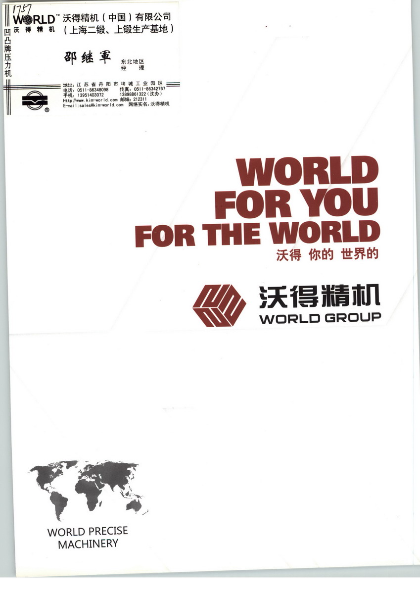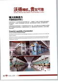 沃得精机(中国)有限公司座落于江苏丹阳,东临苏锡常,西接宁镇扬,地处上海经济圈腹地,根植沃土,必有所得。公司自1953年建制以来,专业从事机械压力机、数控冲、剪板机、折弯机、油压机等金属成型锻压设备研发与制造:2004年通过了ISO9001质量体系认证;98年顺利改制,依托企业的灵活机制及现代化管理,通过沃得人十几年的努力,产值销售增加了近200倍;2006年成功在新加坡主板上市成为锻压行业唯一境外上市企业;2007年通过ISO14001环境体系认证和ISO18001职业健康体系认证;并先后获得了“江苏省高新技术产品认定证书”、“江苏省高新技术企业认定证书”、“标准化良好行为证书”、“江苏省著名商标”、“江苏名牌产品证书”、“江苏省民营企业纳税百强”、“江苏省企业技术中心”等等荣誉,并连续5年被评为“中国工业行业排头兵企业”。沃得精机(中国)有限公司注册资本逾2800万美元,占地面积1000余亩,总资产10亿多元,拥有员工2500多人,其中工程技术人员270余人。公司本部设有压力机技术研究中心、数控板料技术研究中心、重型机床技术研究中心,通过扩大与美、德、法、意、日、瑞士等国专业公司以及国内十余家高校、科研院所的合作和产研联合,迅速发展和完善数控锻压设备等高技术产品。科研力量雄厚,并被授予省级企业技术中心。公司主要生产设备逾1000台,有日本日立精机五面体加工中心、12m数控导轨磨床、意大利PAMA镗铣加工中心、德国滚齿机、德国数控单臂铣床、英国刨齿机、俄罗斯落地镗铣床、齐二落地镗铣床等大型高档关键设备近150台,同时最大行车的起吊能力增加至160吨。先进的科技力,强大的制造力,独特的工装,精湛的工艺,精良的生产母机,从而保证了沃得精机产品的可靠与珍贵。沃得精机,贵在可靠。沃得精机(中国)有限公司产品全、规格多,主要产品涵盖:J23、JH23、J21、J21S、JH21、JS31、JW31、JH31、JH25、JS36、JH36、JW36、JX36、QC11Y、QC12Y等20余系列200多个品种大中小型压力机、普通数控剪板机、普通数控折弯机。广泛应用于汽车制造、通信、计算机等领域。在全国的大中型城市均设有销售网点和服务机构,产品远销到东南亚、南美、欧洲和南非等地,成为行业领军者,是规模大、品种全、营销服务网络广的锻压设备制造商。公司生产的系列产品有:JH21系列开式固定台压力机,整机采用进口PLC集中控制,优质钢板焊接机身,具有钢性好、精度稳定的特点;气动双平衡缸,曲轴纵置,结构紧凑,滑块连杆等、采用树脂砂铸造,用户可根据需求选配自动润滑、光电保护、变频调速、空气吹料等装置。JH25系列开式双点固定台压力机,适应大面积薄板冲载及高效自动化级进模生产的宽台面压力机,具有高刚性、高精度、高可靠性特点,采用双曲轴逆向传动、钢板焊接机身、矩形六面体导轨等结构,提高了机床抗偏载能力和精度稳定性,保证生产的高质、高效和稳定性。J21G系列高速开式固定台压力机,机身由强度较高的树脂砂铸造而成,具有高强度和较好的吸振性能;采用意大利宇意干式离合器、制动器,动作灵敏,安全可靠;进口调心滚子轴承,风箱式平衡装置;机床采用强制循环给油装置,润滑良好,冷却充分。触摸屏人机界面,具有故障告知功能,维修、调整极为方便。数字式交流伺服驱动和电机;具有强大的自诊断、夹钳保护等功能、可实现远程诊断、根据定位距离切换快速移动速度、时间常数、位置环路增益,实现高速度的定位和高度的命中率。此外公司生产的JS31系列闭式单点固定台压力机,该系列冲压机床具有较广的通用性特点,可以进行冲裁、成型、弯曲、浅拉伸等加工,对冲制各种薄板成型零件极为合适,可以广泛应用于汽车、拖拉机、农业机械、轻纺机械、电气、电机、轴承等行业。随着世界经济一体化,作为世界工厂的中国制造业更是蓬勃发展。新世纪的朝阳正升,沃得人紧紧把握时代的脉搏,抓住机遇、明确目标:最具竞争力的中小型压力机生产基地,一流的板料设备生产基地,最具影响力的大型压力机生产企业。机遇与挑战并存,耕耘与收获同在,这是一片沃土,沃得人怀揣着一个梦想,打造中国装备的核心竞争力,为中国乃至世界制造业提供优质的工作母机,这是沃得人的期待,也是中国装备制造业的期待。沃得精机,装备中国,服务世界。