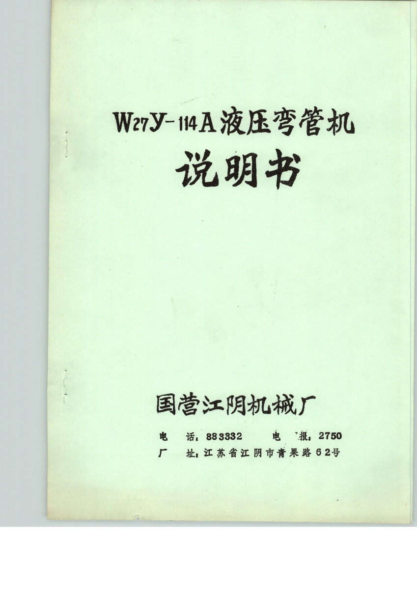 江阴机械厂是机械工业部弯管机定点生产厂家,江苏省机械待业骨干企业,纺工部梳棉机出口基地,拥有 自营出口权。工厂主要产品有商产梳棉机,液压与CNC弯管机,胶屯机,汽车车头不锈钢保险杠,高压 油泵,铸铁件等。工厂设备先进,具备现代化的铸造和金加工设备,如电炉、分析仪、壳型、壳心机、清 理设备、加工中心、CNC车床、三座标测量仪等。