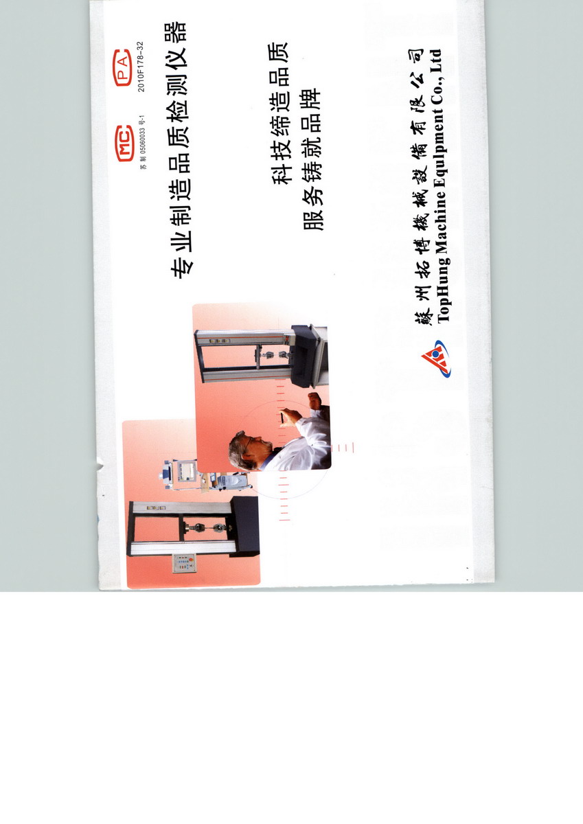 苏州拓博机械设备有限公司为长期致力于品检仪器设备研发、生产的台资高新技术企业,拥有雄厚的产品研发、机构加工能力,及完善的技术服务体系。公司主要产品:材料试验机、拉力试验机; 笔记本电脑转轴寿命试验机、全自动插拨力试验机; 盐雾试验机、恒温恒湿试验机 、老化试验机; 包装压缩试验机、包装跌落试验机、纸板抗压试验机 ; 电线摇摆试验机、电线突拉试验机、耐燃烧试验机; 产品广泛应用于:金属材料、五金工具、汽车配件、电子电工、电线电缆、纸品包装、纺织业、自行车业、皮革业等行业的。 我公司在国内多个城市发展经销商、代理商及技术合作伙伴,建立了一个完善的销售、服务网络,有效为广大客户提供技术服务保障。